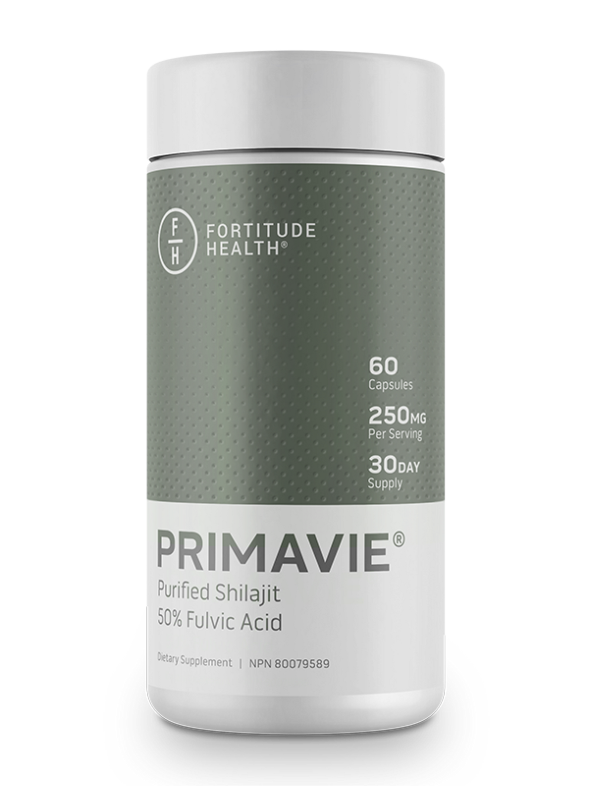 Fortitude Health PrimaVie® is a high-quality, clinically proven purified shilajit rich in fulvic acid and contains dibenzo-α-pyrones (DBPs), DBP-Chromoproteins (DCPs), and 40 different minerals. PrimaVie® is the highest bioactive shilajit available, sourced from distinct biomes and processed through Green Chemistry Principles water extraction to remove impurities and enhance the potency and bioavailability of the shilajit extract.
